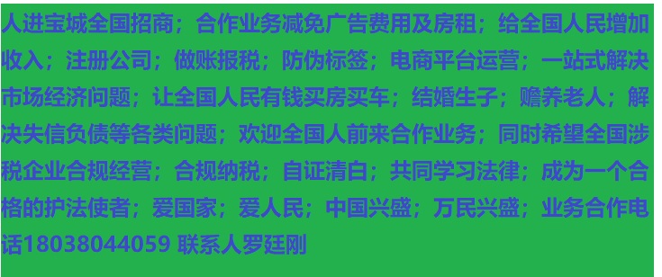 人進寶城全國招商;合作業務減免廣告費用;歡迎全國涉稅企業前來合作;業務合作電話 18038044059 聯系人羅廷剛